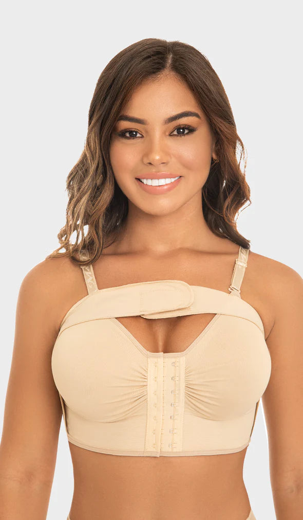 Post OP Bra with covered back with implant stabilizer band, a detail that provides support and convenience.