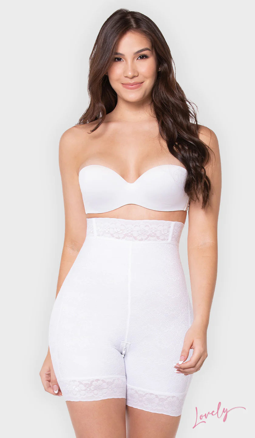 Short leg, extra high waistline with medium compression, thanks to its lace fabric, you will be able to shape and control the lower, middle and upper abdomen in a moderate way.